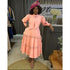 Ribbon Design Round Neck Puff Shoulder Pleat Midi Dress