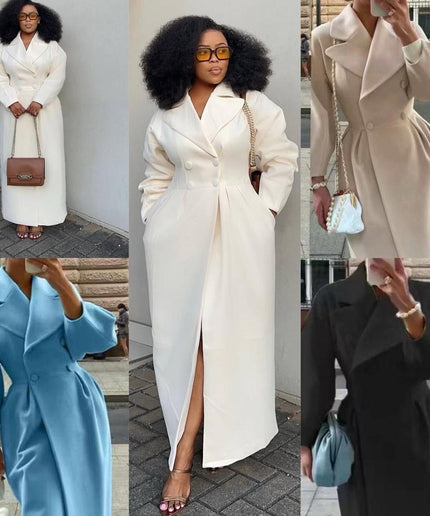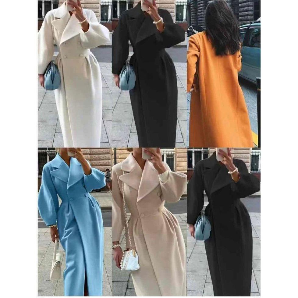 Buttoned Long Sleeves Loose Notched Collar Outerwear Coats
