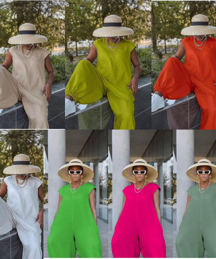 This Round Neck Wide Leg Jumpsuit is crafted from high-quality fabric for a timeless look that won't go out of style. Featuring a modern design, wide legs, and a round neck, this jumpsuit is stylish and elegant.