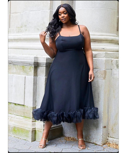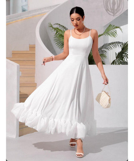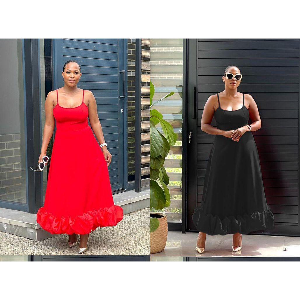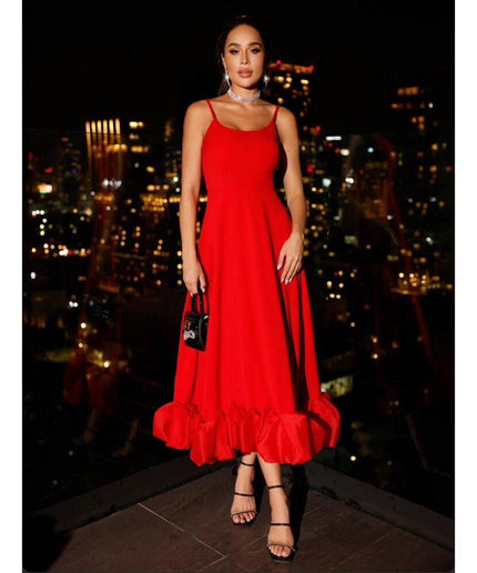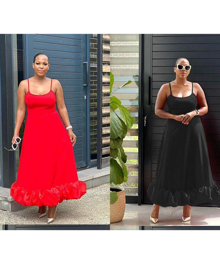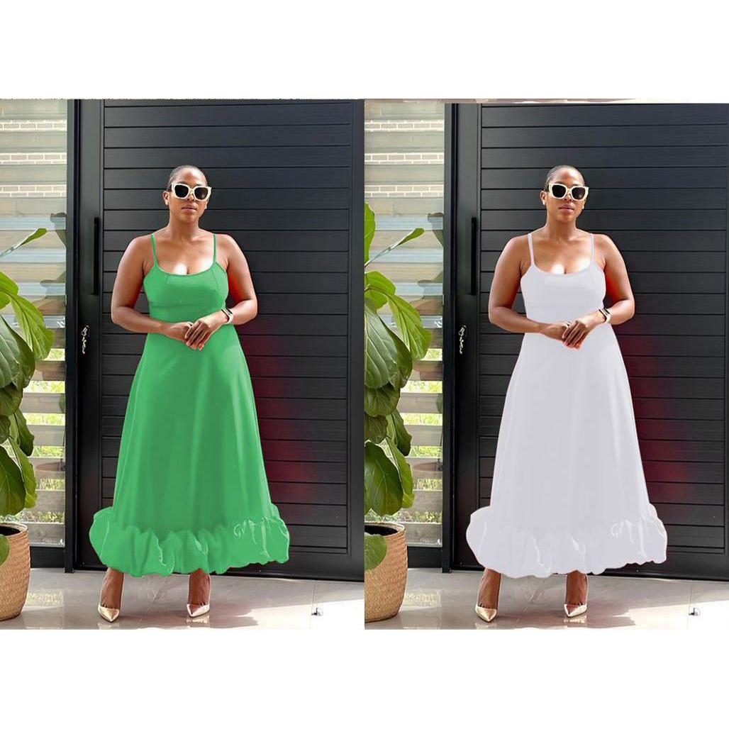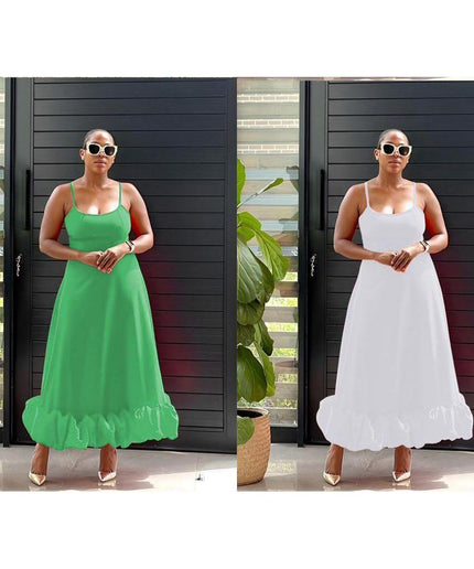 Ruffle Hem Sleeveless Maxi Dress Its classic design is flattering and timeless, making it ideal for any occasion. This maxi dress is made from a lightweight, breathable fabric that combines comfort and practicality. It's a must-have for a stylish wardrobe.