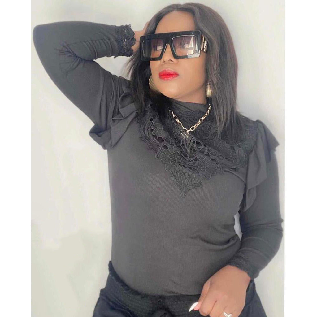 Ruffle Lace Patchwork Long Sleeve Blouse