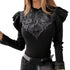 Ruffle Lace Patchwork Long Sleeve Blouse.