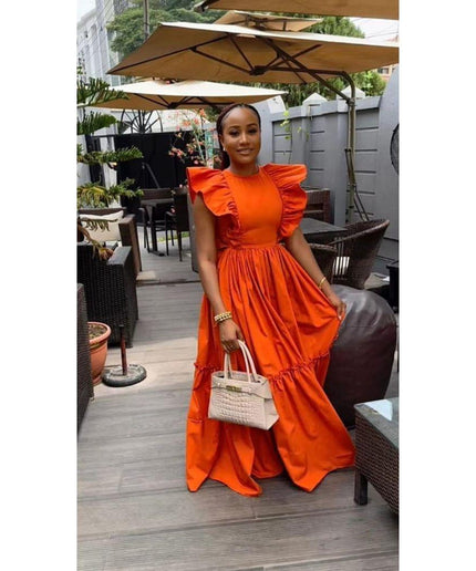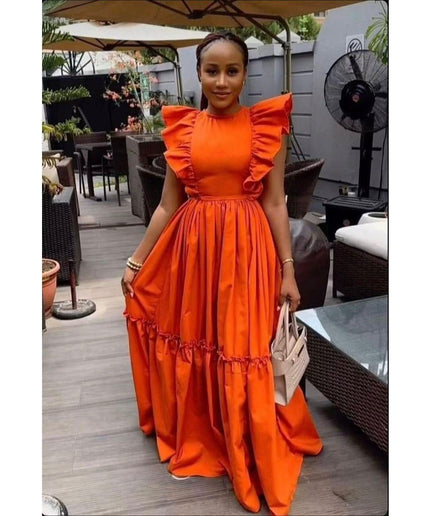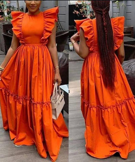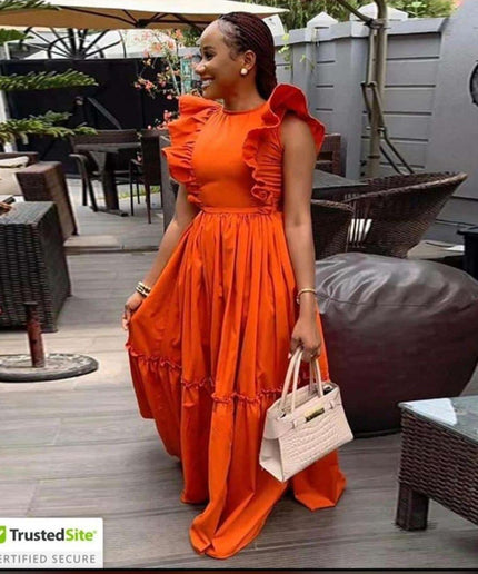 Ruffle Shoulder Round-Neck Sleeveless Maxi Dress