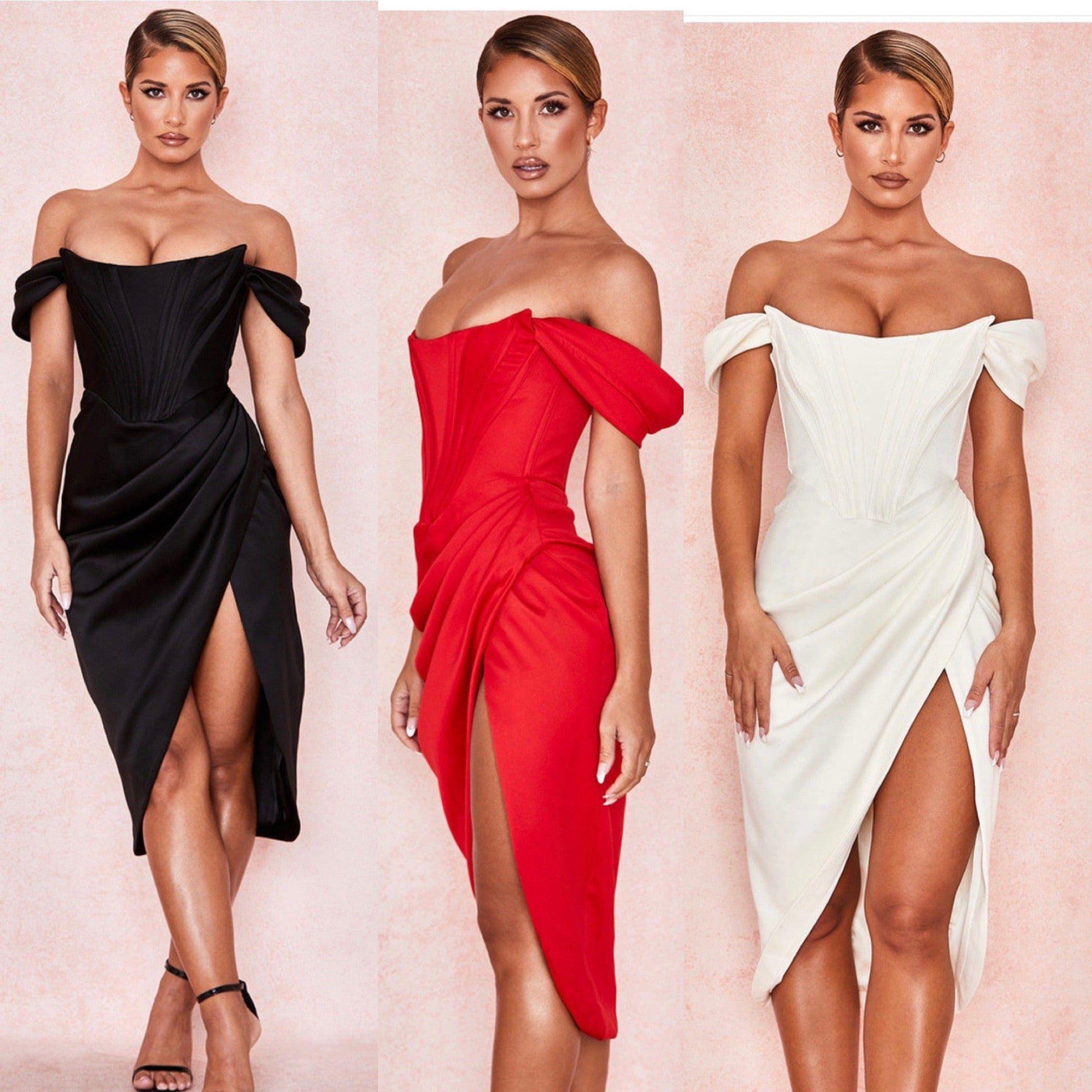 This Satin Off Shoulder Corset Dress features a timeless look and state-of-the-art design, combining a classic off-shoulder silhouette with modern corset detailing to create a striking evening look. Crafted from luxurious satin fabric, this dress will make you look and feel your best.