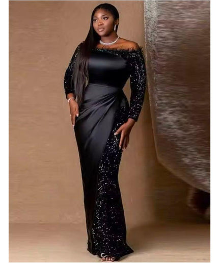Explore the stunning design of our Off-Shoulder Sequined Mermaid Prom Dress, perfect for any special occasion. With intricate sequin detailing and a figure-flattering mermaid silhouette, you'll feel like a true fashion expert. Made with high-quality materials, this dress will make you stand out in the crowd while providing a comfortable fit. Make a statement and radiate confidence with this dress that is designed to enhance your natural beauty.