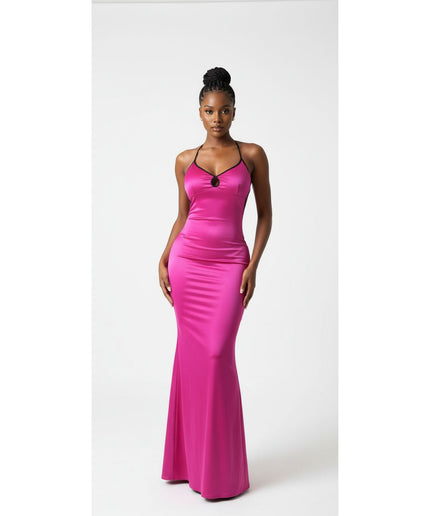 Look stylish and modern in this elegant and fashionable backless V-neck dress. Featuring an eye-catching design and durable construction, this dress is perfect for any occasion.