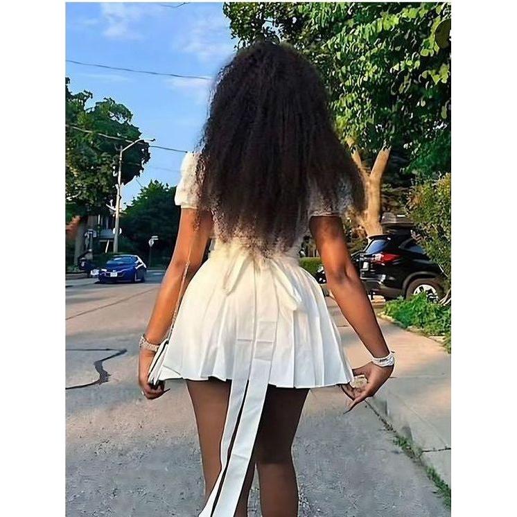 This Pleated Mini Dress is an elegant and alluring addition to your wardrobe, expertly crafted to flatter your curves and enhance your beauty. Made with high-quality fabric and designed with a stylish Open V-Neck, this dress is perfect for making a statement at any special occasion.