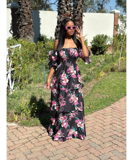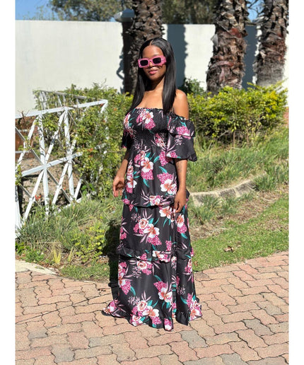 Look absolutely gorgeous in this modern maxi dress. Expertly crafted with high-quality fabric, this stylish and elegant dress features a beautiful floral print. Perfect for any special occasions.