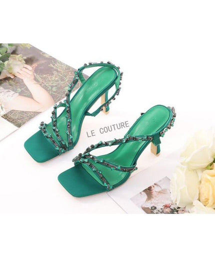 Make a bold statement with the Sexy Gemstone Short Heel Sandals. A perfect blend of modern and stylish, the shoe is designed with an eye-catching gemstone for a unique look. From formal affairs to everyday wear, these heels will take any outfit to the next level.