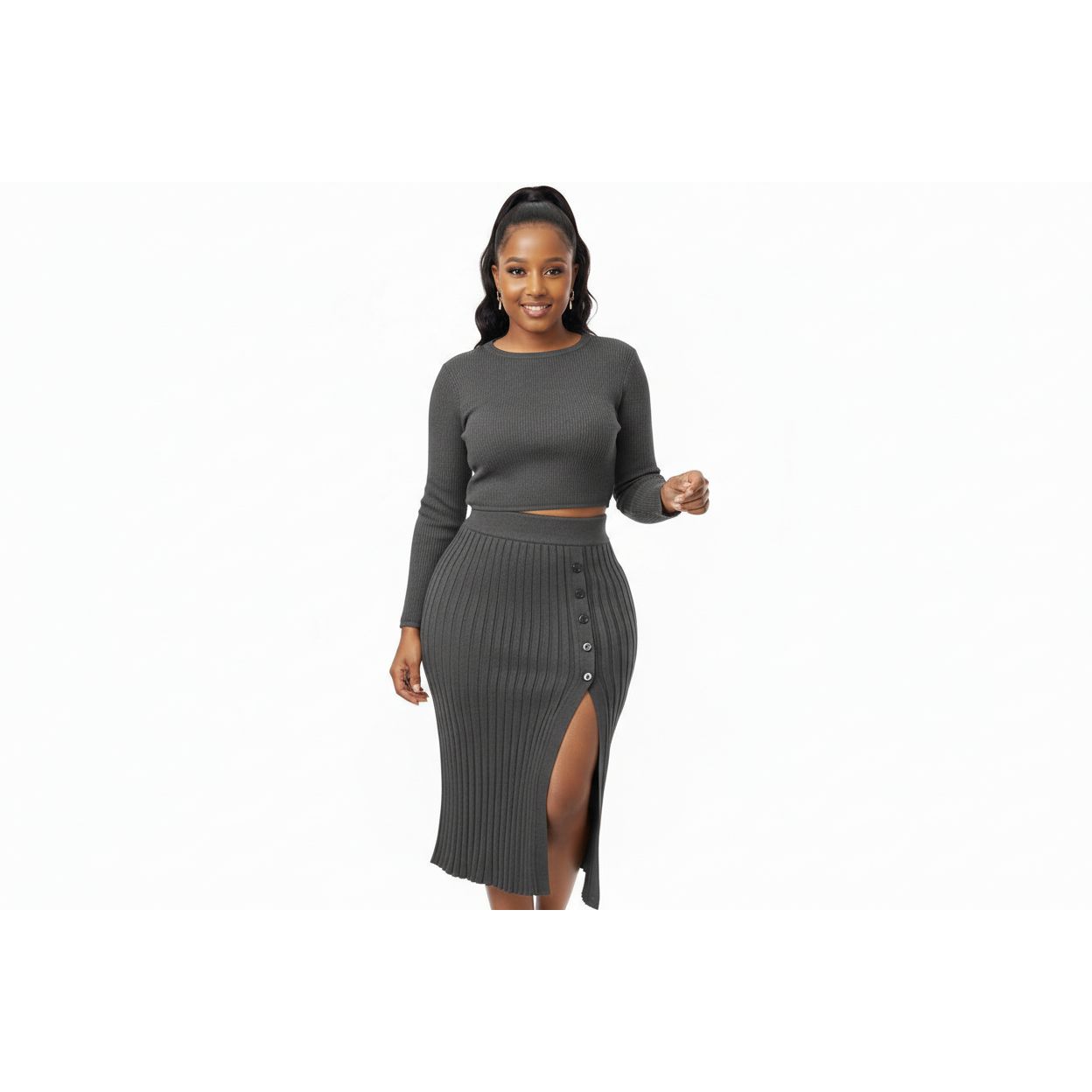 This knitted top and skirt set boasts quality fabric and a modern, elegant design that is both fashionable and stylish. Made for the stylish woman, this set is a must-have for any wardrobe.