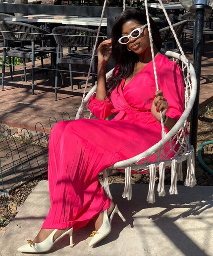 Sexy Pleated V-Neck Jumpsuit