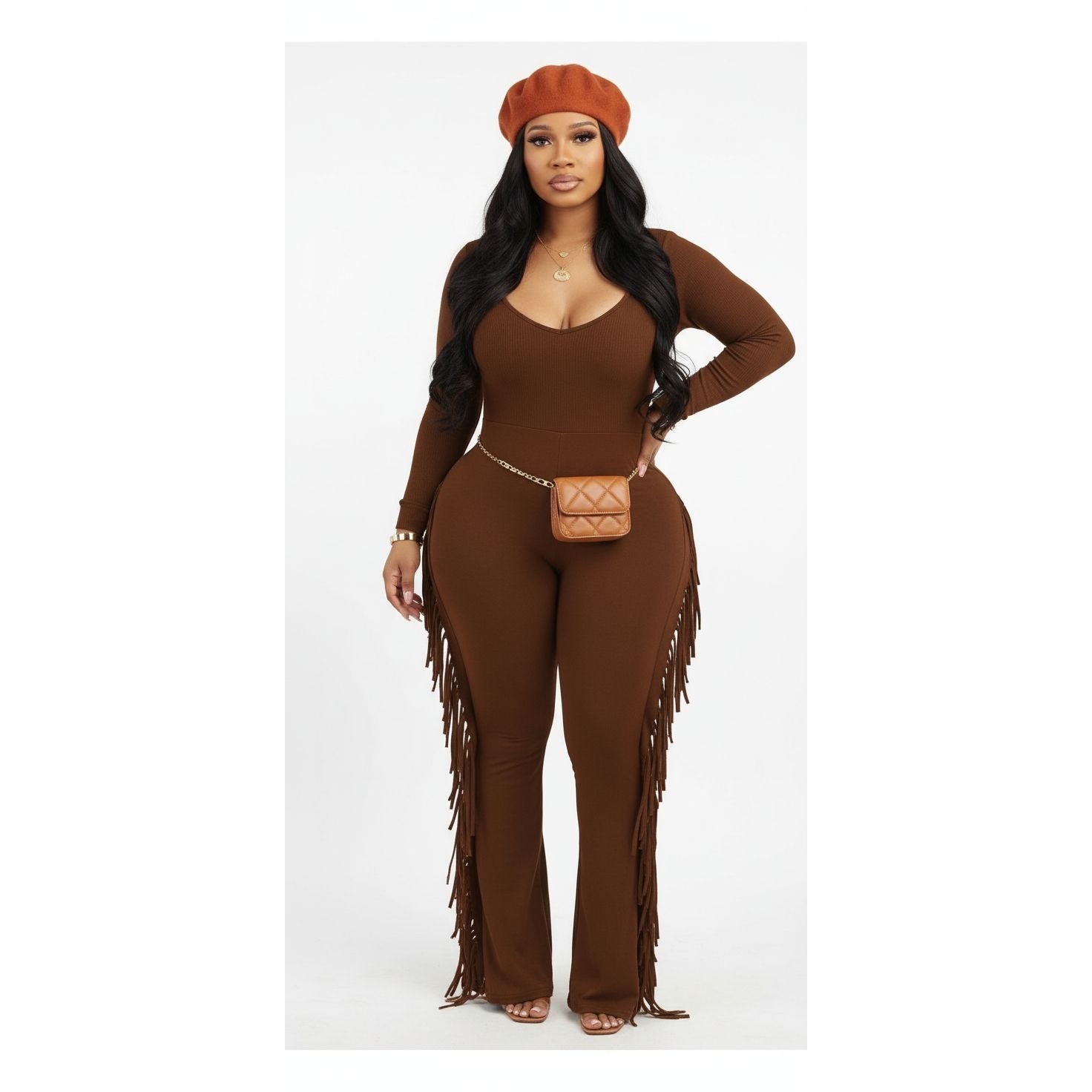 This elegant and modern jumpsuit features quality construction and a stylish ruffled side, making it a must-have addition to your wardrobe. Combining the perfect blend of sophistication and femininity, this jumpsuit is sure to turn heads and make a lasting impression. Elevate your style with this chic and fashionable piece.