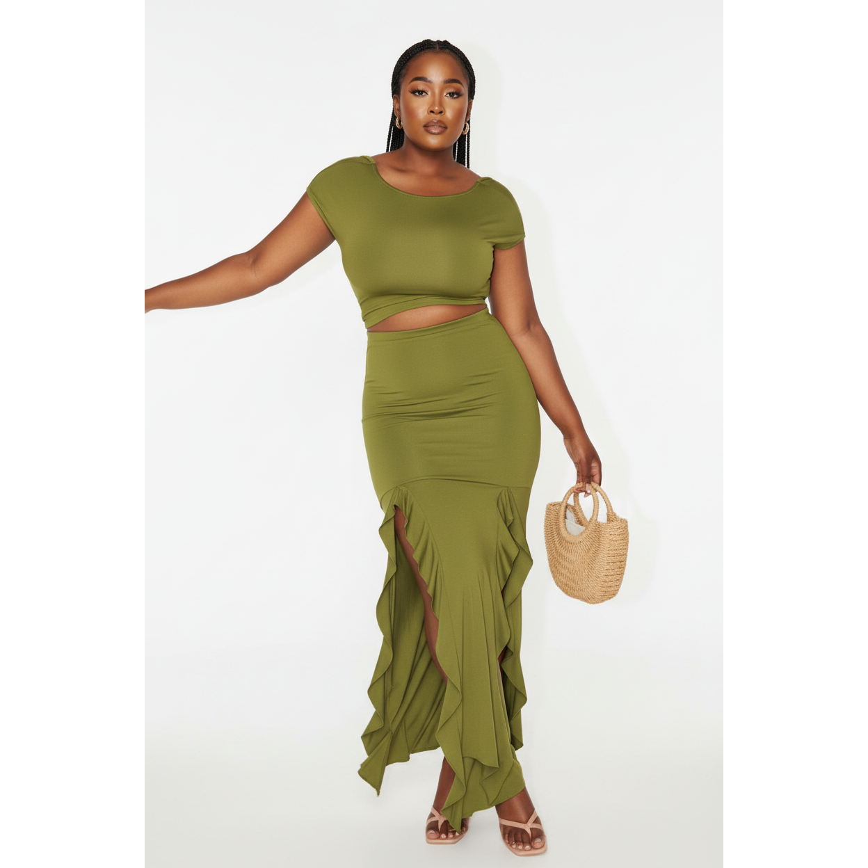 "This modern and stylish set features a quality design that exudes sexiness. With its ruffled skirt, this set offers a unique and fashionable look perfect for any occasion."