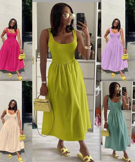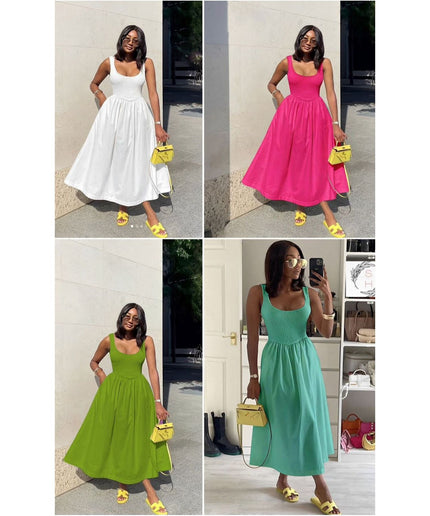 Transform your wardrobe into a classy and chic ensemble with this Sexy Sleeveless Round Neck Dress. This versatile and flattering dress is a must-have for any fashion-forward individual. Featuring a round neckline and sleeveless design, this dress is perfect for any occasion. Embrace your natural beauty and make a statement with this wardrobe essential.