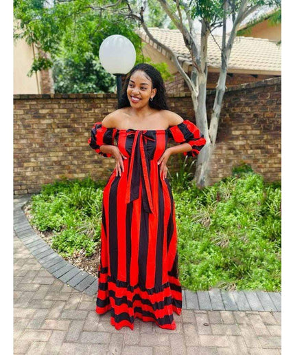 Look stunning in this Sexy Striped Off Shoulder Dress. Featuring stylish stripes and an off-shoulder design, this dress is sure to make you stand out from the crowd. Show off your curves with this form-fitting piece that ensures you look and feel amazing.