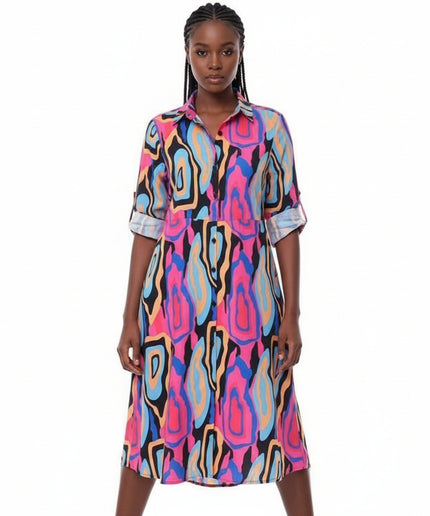 This Short Sleeve Buttoned Dress is a stylish addition to any wardrobe. Featuring a sophisticated turn down collar, this dress exudes elegance. Perfect for plus size fashion, its fashionable design will get you noticed. Elegant and timeless, this piece is sure to make a statement.