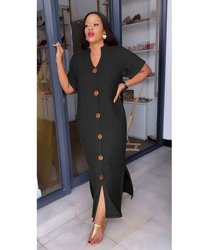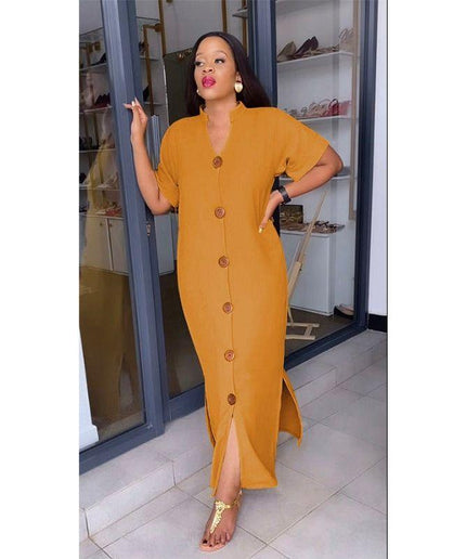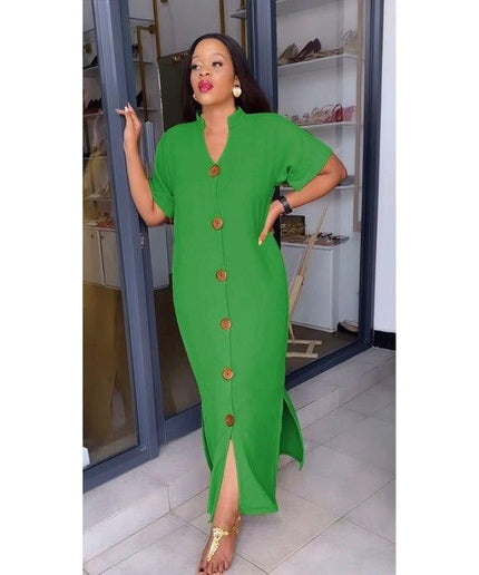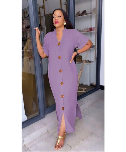 Short Sleeve V-neck Side Slit Maxi Shirt Dress