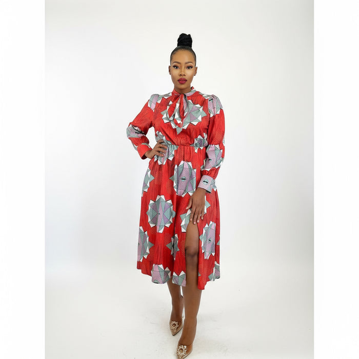 This dress features a side slit and a floral pattern, making it both stylish and comfortable.