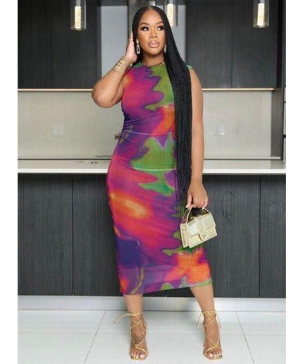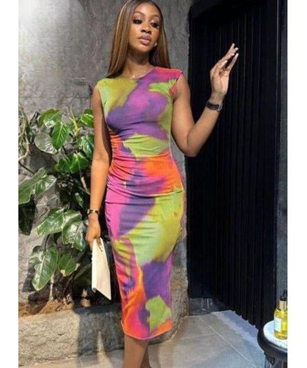 Sleeveless Bodycon Tie-dye Dress