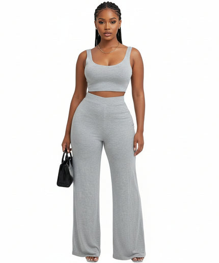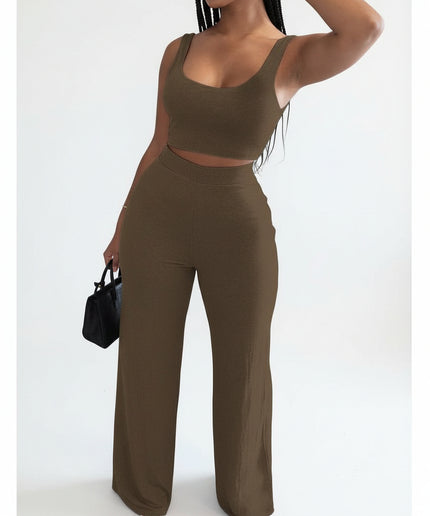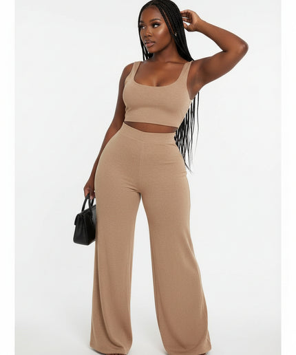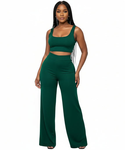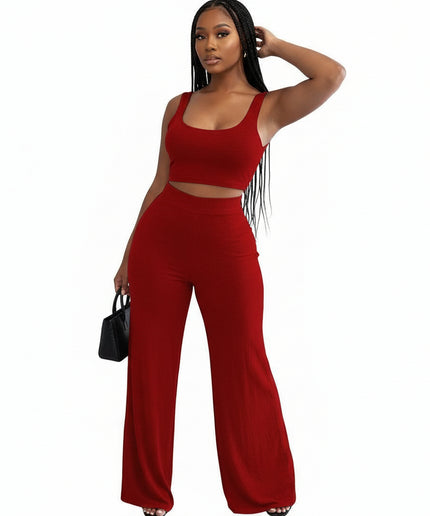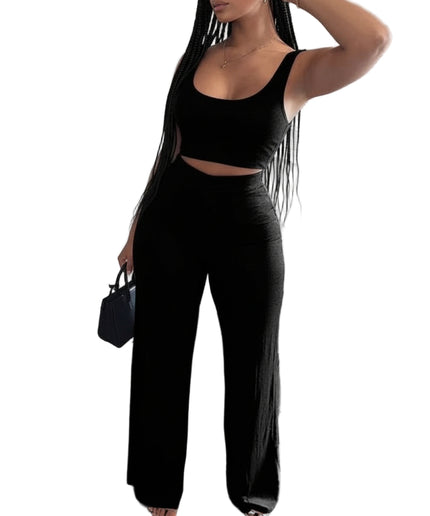This stylish and elegant Sleeveless Crop Top And Pant Set boasts quality material that will elevate your modern wardrobe. Stay cool and comfortable with its sleeveless design, perfect for any occasion.