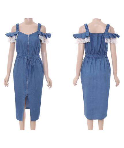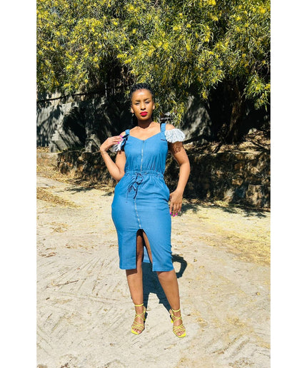 This Sleeveless Denim Dress features a modern silhouette with a front slit, perfect for adding a touch of style and fashion to any wardrobe. Crafted with denim, it's the perfect combination of comfort and style, so you can look your best and feel your best.