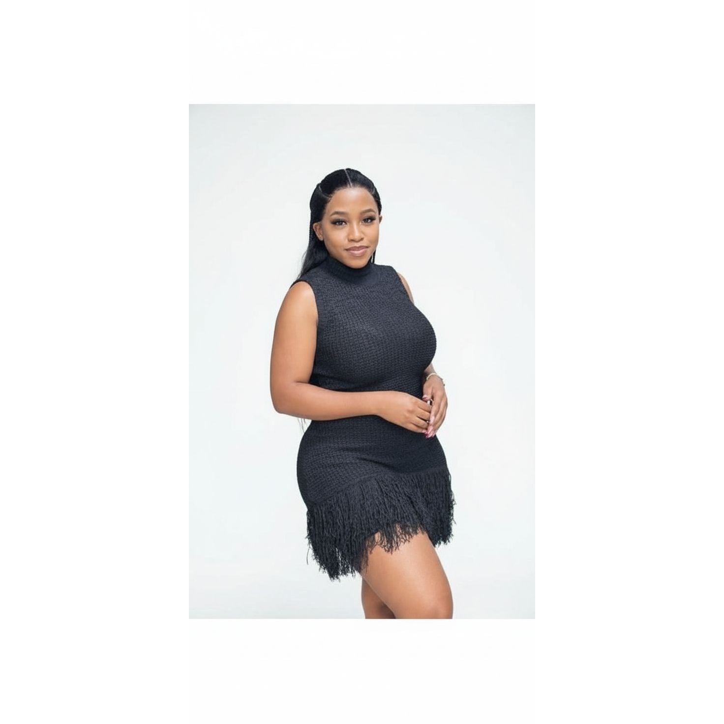 Sleeveless Knitted Solid Color Short Dress.