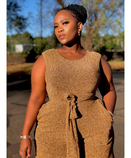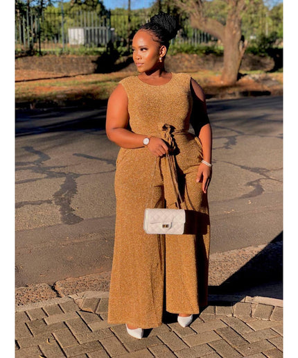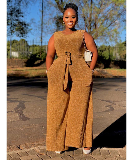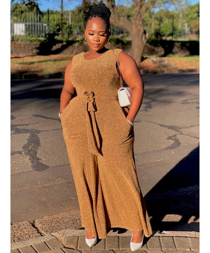 This elegant, modern Sleeveless Round Neck Jumpsuit provides quality and style. Its simple yet eye-catching design, featuring a round neck and sleeveless silhouette, will ensure that you stand out in any room.
