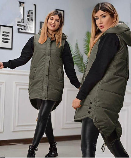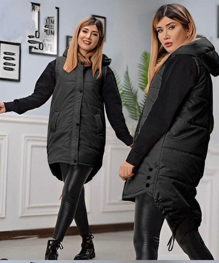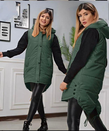Sleeveless Side button Long Bomber Coat Introducing our new Sleeveless Side button Long Bomber Coat, a versatile addition to your wardrobe. Made with high quality materials and thoughtful design, this coat will keep you warm and stylish throughout the year. With functional side buttons, a sleek silhouette, and a longer length, this coat will elevate any outfit without sacrificing comfort. Perfect for any occasion, it's the essential piece that every fashion-conscious individual needs.