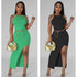 Make a statement with this fashionable, modern bodycon dress. Crafted from quality fabric, the dress features a sleek design with a sleeveless silhouette and a seductive side slit. You'll be looking stylish and chic with this eye-catching piece.