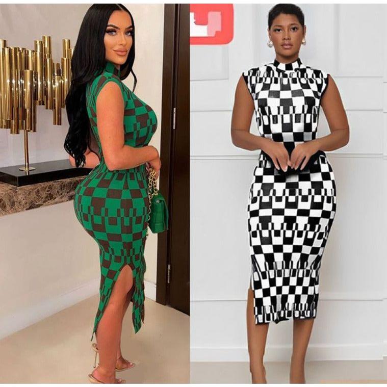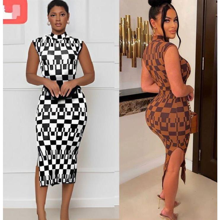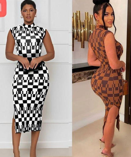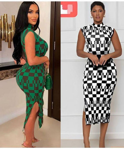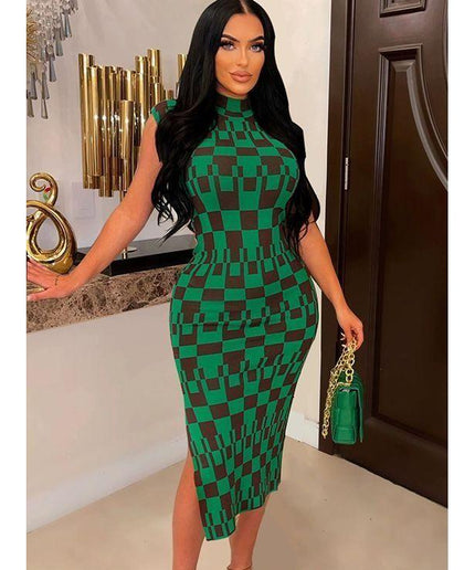 Make a bold style statement with this stylish and modern sleeveless side slit turtleneck dress. Crafted from a high-quality fabric blend, this dress is designed to hug your curves while the side slit allows you to make a style statement with every step. Perfect for any occasion.