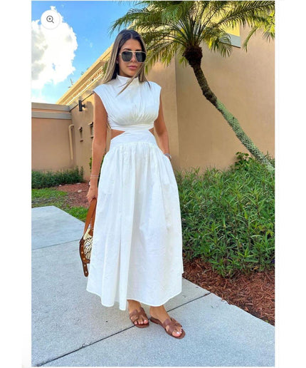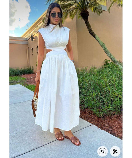 Sleeveless Swing Maxi Tank Dress. This dress is designed for ultimate comfort and style. With its free-flowing fabric and flattering cut, you'll feel cool and confident all day long.