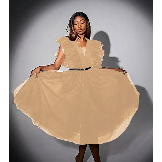 Expertly crafted with high-quality lace, this sleeveless dress exudes modern elegance and fashionable style. A must-have for any wardrobe, this V-neck dress is the perfect blend of quality and sophistication. Elevate your look with this stylish and timeless piece.
