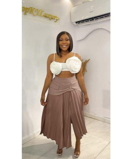 Designed for both style and comfort, this midi skirt is crafted with soft and lightweight fabric for a touch of luxury. The ruched details provide a flattering and unique asymmetrical silhouette, making it a versatile addition to any wardrobe. With its timeless design and premium quality, this midi skirt is a must-have for anyone looking to elevate their fashion game.