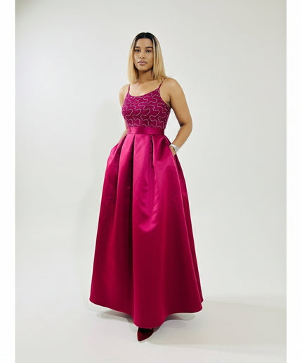 This stunning A-line evening dress features exquisite lace appliques, adding a touch of elegance to your look. The ball gown silhouette flatters any body type, while the convenient pockets provide practicality. And with the long, backless design, you'll be turning heads all night long.