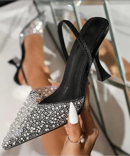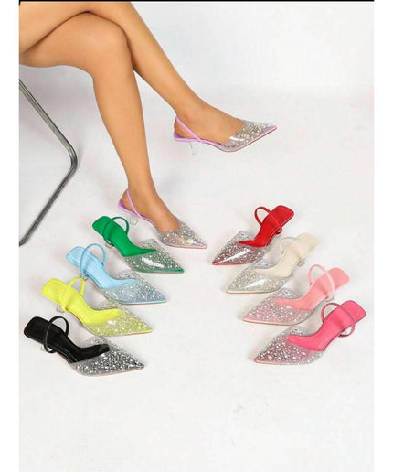 Solid Transparent Color Glitter Sandals Ankle Strap High Heels. Create a statement of fact about the product's benefits, based on the language used in the sentence. Featuring a sleek ankle strap design and a glittering finish, these Solid Transparent Color Glitter Sandals offer both style and support. With high heels that provide extra height without sacrificing comfort, these sandals are the perfect choice for a night out on the town. Elevate your look and your confidence with these versatile and fashionable shoes.