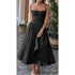 Spaghetti Strap Pleated Sleeveless Corset Midi Dress. This midi dress features spaghetti straps, pleated details, and a sleeveless design, ensuring maximum comfort and style for any occasion. The corset design accentuates the waistline, creating a flattering silhouette that will make you stand out in any crowd. Made with high-quality materials, this dress is durable and built to last, making it a must-have in any fashion-forward wardrobe. With its timeless design and versatile look, this dress is perfect for any season and can be dressed up or down depending on the occasion. Add this stunning piece to your collection and elevate your style game with ease.