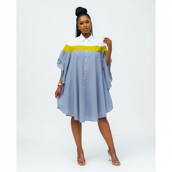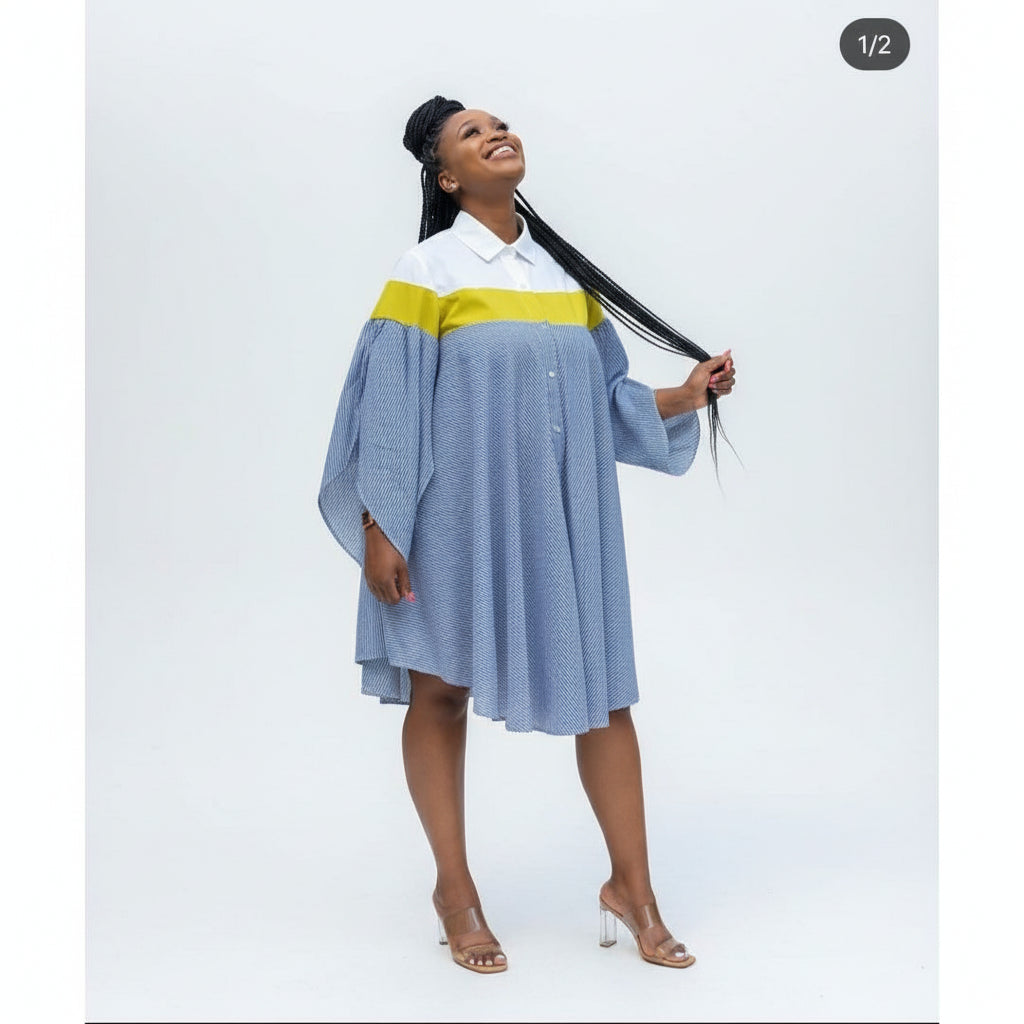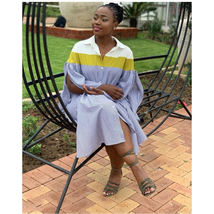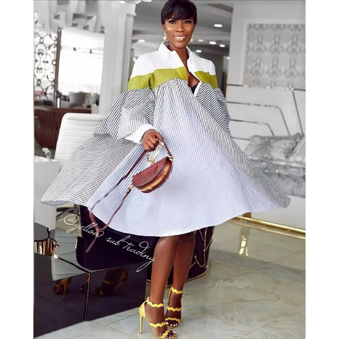 Casual Striped Asymmetrical Knee Length Shirt Dress.