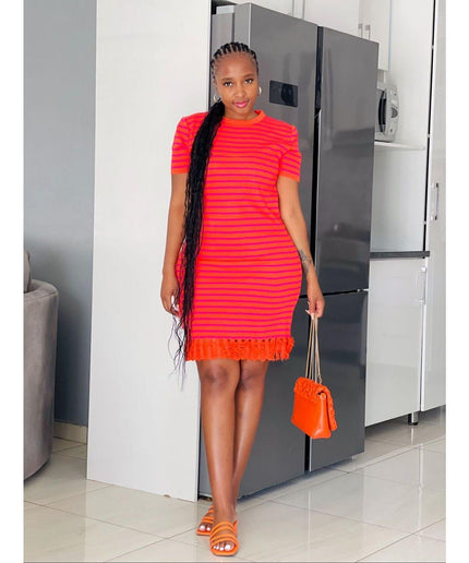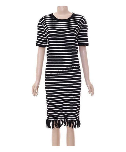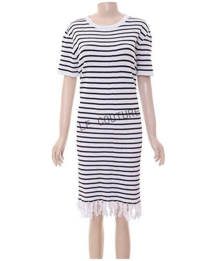 Expertly crafted with quality materials, this modern and elegant Striped Short Sleeve Dress is a must-have for any wardrobe. Its timeless striped design and short sleeves make it versatile for any occasion. Elevate your style with this sophisticated and stylish dress.