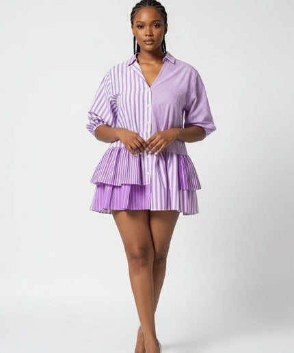 This Stripped Short Sleeve Dress boasts quality construction for a modern and stylish look. With short sleeves and a stripped pattern, it offers a timeless and versatile addition to any wardrobe. Elevate your style with this dress's expertly crafted design.