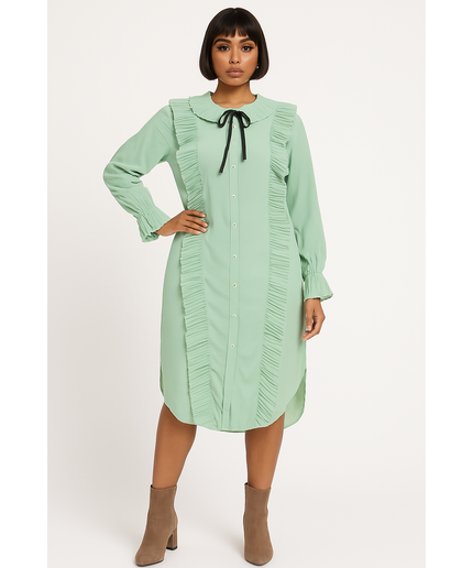 Tie Neck Vintage Dress Designed for timeless elegance and style, this vintage dress features a beautiful tie neck that adds a touch of sophistication to any outfit. Made with high-quality fabric, this dress offers both comfort and durability for long-lasting wear. Elevate your wardrobe and make a statement with this must-have dress.
