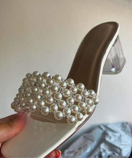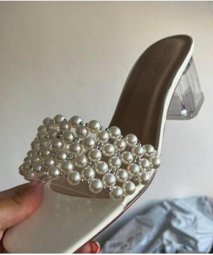Upgrade your look with these Transparent Glass Heels Shining Pearl Sandals. Featuring high-quality glass heels and shimmering pearls, these sandals are the perfect addition to any outfit. With their transparent design, these sandals add a touch of elegance to any look while providing ultimate comfort for all-day wear. Don't settle for ordinary sandals, make a statement with the unique and luxurious Transparent Glass Heels Shining Pearl Sandals.