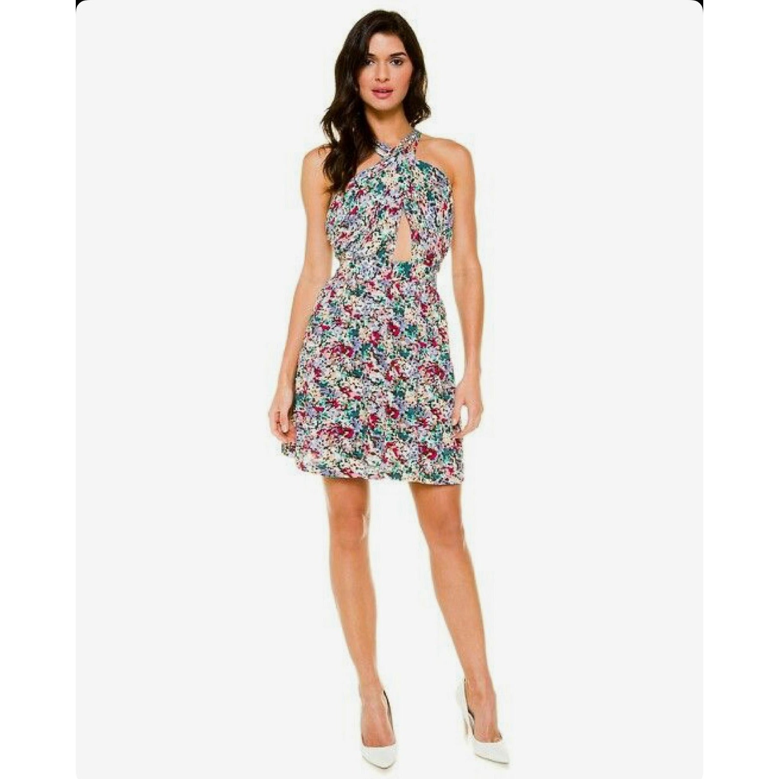 V-Neck Floral Mini Dress This dress is made with high-quality fabric that is soft and comfortable to wear. It's designed with a flattering v-neckline and features a beautiful floral pattern, making it the perfect addition to your wardrobe. With its versatile style and durable construction, this dress is sure to make a statement at any event you attend.