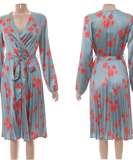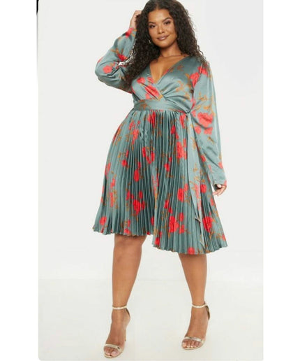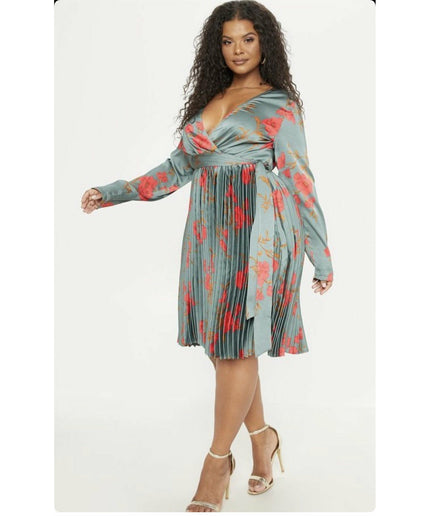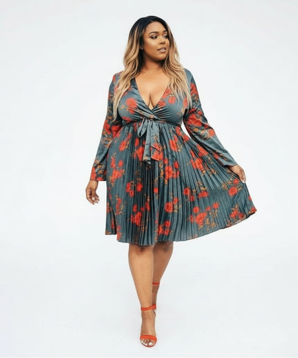 This V-Neck Floral Pleated Midi Dress is perfect for outdoor events. It features a stylish V-neck, beautiful all-over floral detailing, and a smart pleated design for a modern, elegant look. Crafted with fashion-forward style and made from comfortable fabric, it's sure to turn heads.