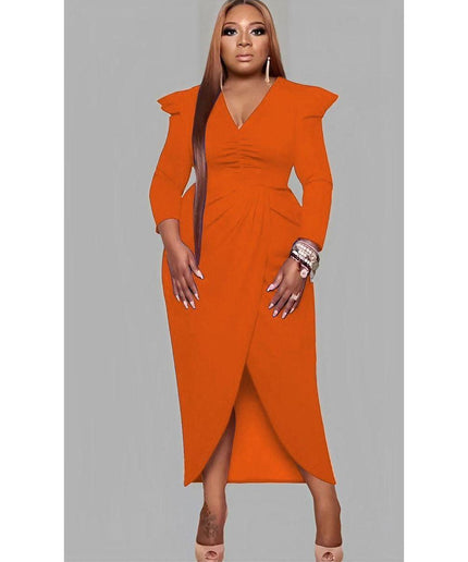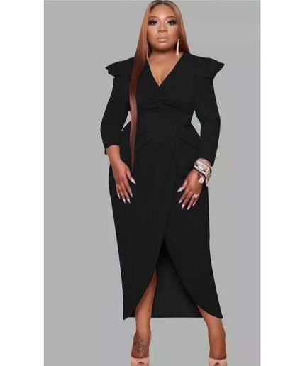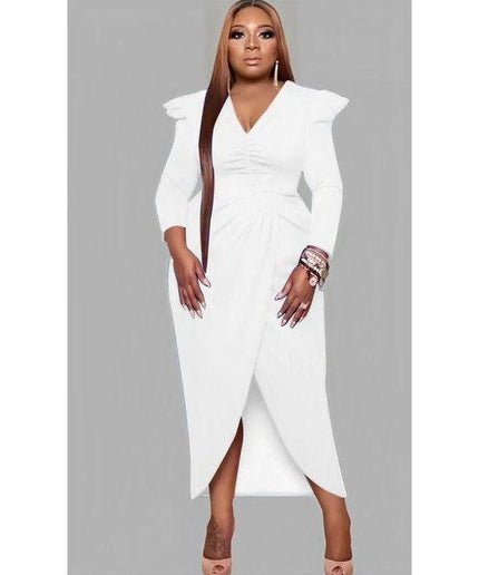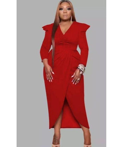 This stylish and fashionable V-Neck Irregular Slit dress adds a modern and unique flair to your wardrobe. Featuring an on-trend slit and high-quality materials, you'll be sure to turn heads. The perfect balance between effortless and chic.