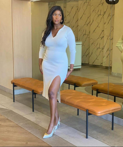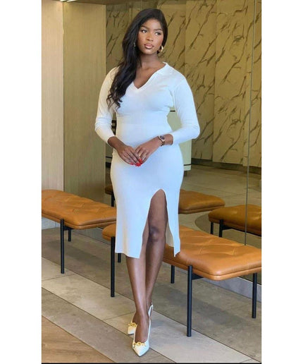 This V-Neck Long Sleeve Dress is a stylish, modern wardrobe staple. Featuring a flattering V-neck and long sleeves, it provides excellent coverage in a timeless, classic design.