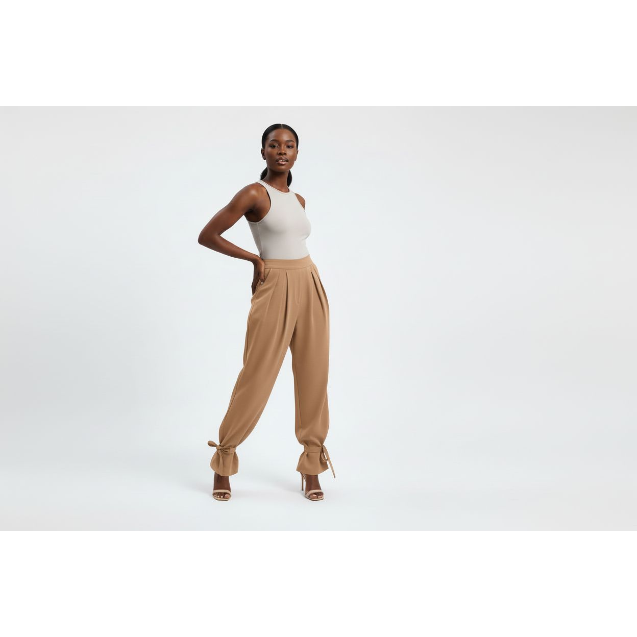 Experience the timeless elegance of these vintage lace-up pleated high waisted pants. Crafted with stylish intricacy, these pants feature intricate lacing that evokes classic style, while the pleated design and high waistline offer a perfectly flattering fit. A luxurious addition to any wardrobe.