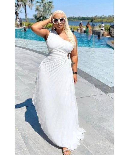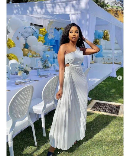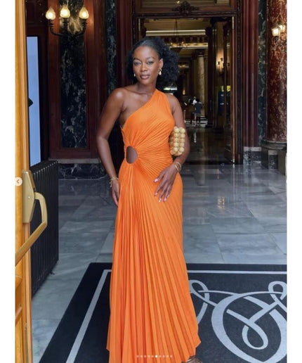 This Vintage One Shoulder Sleeveless Dress offers timeless style with a touch of modern class. It features a stylish, fashionable, and vintage look with a one-shoulder sleeveless cut. Perfect for any formal or special occasion.