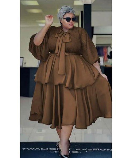 This Vintage Patched Pleated Dress combines quality with modern elegance and style. With its plus size option, it's perfect for any occasion. Update your wardrobe with this stylish dress.