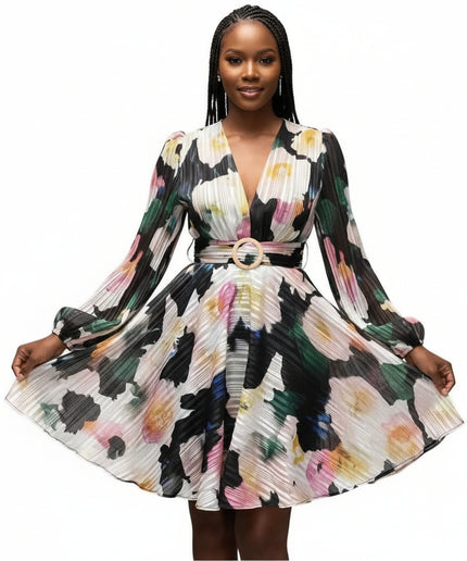 ultra-feminine and effortlessly chic, this vintage pleated floral short dress is a must-have for any fashion-forward wardrobe. With its floral design and flattering pleats, it's a timeless piece that will elevate any outfit.
