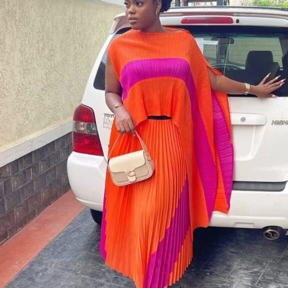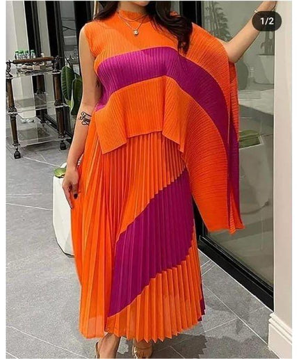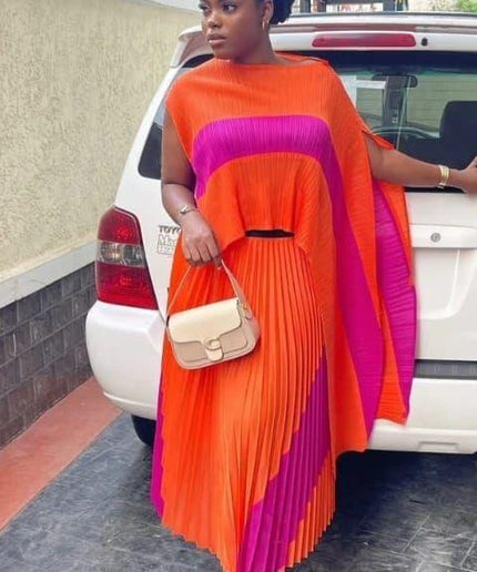 Experience timeless elegance with our Vintage Pleated Top & Skirt Set. Made with high quality materials, this modern and stylish set features beautiful pleats that add a touch of sophistication. Perfect for any occasion, this set is a must-have for any fashion-forward wardrobe.